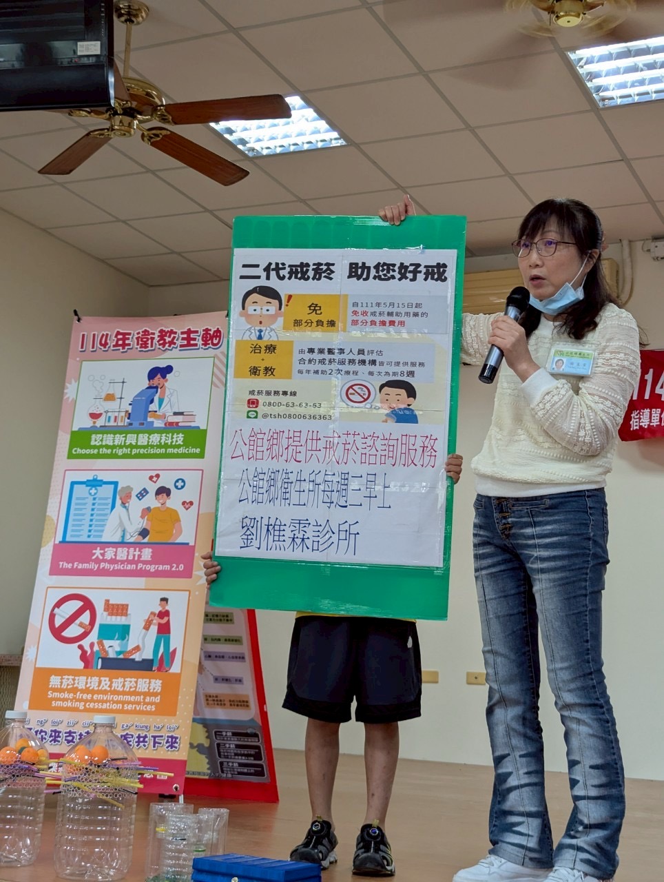 「社區菸害防制宣導」公館鄉衛生所訂於114年04月13日(星期日)上午8:00~11:00於【公館鄉尖山社區活動中心】,辦理『菸品的危害,二、三手菸的危害』『菸害防制法宣導』『0800-636363戒菸諮詢專線及醫療單位提供戒菸治療及衛教諮詢服務』宣導,敬請長官蒞臨指導